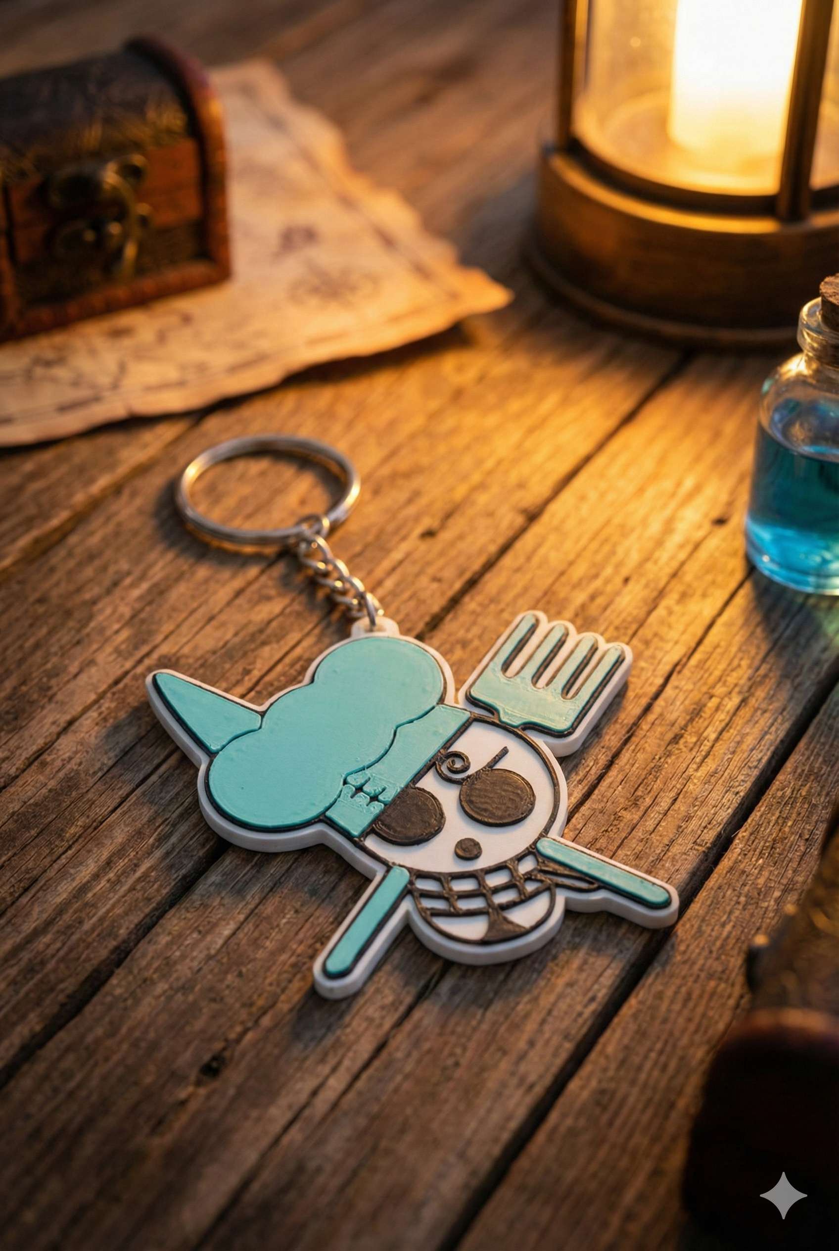 Este llavero está inspirado en el logo de Sanji, símbolo de su identidad como cocinero, caballero y combatiente. Representa la pasión que nunca se apaga, la lealtad a su tripulación y la decisión de proteger lo que importa, cueste lo que cueste.
